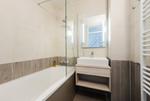 Begane grond: Hal met toiletruimte. Via de hal komt u in de living met open keuken. De keuken met rechte opstelling is voorzien van diverse inbouwapparatuur. Vanuit de woonkamer is de slaapkamer op de begane grond bereikbaar. Op deze etage is ook nog een badkamer met ligbad en wastafel.