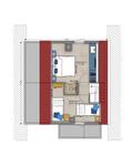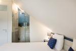 1e verdieping: via de overloop zijn de twee slaapkamers bereikbaar. De grote slaapkamer is voorzien van doucheruimte.