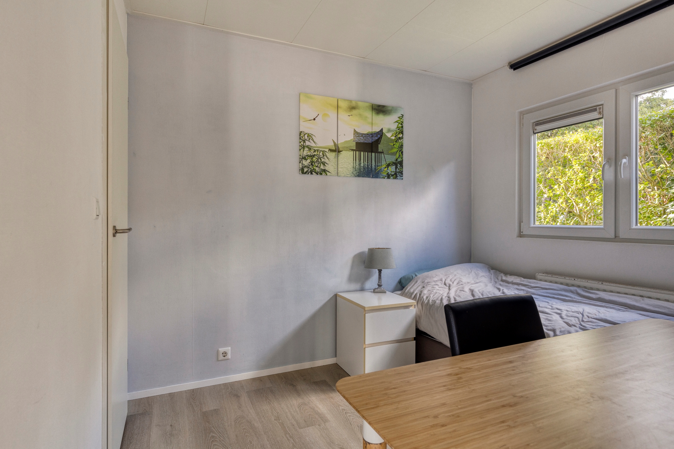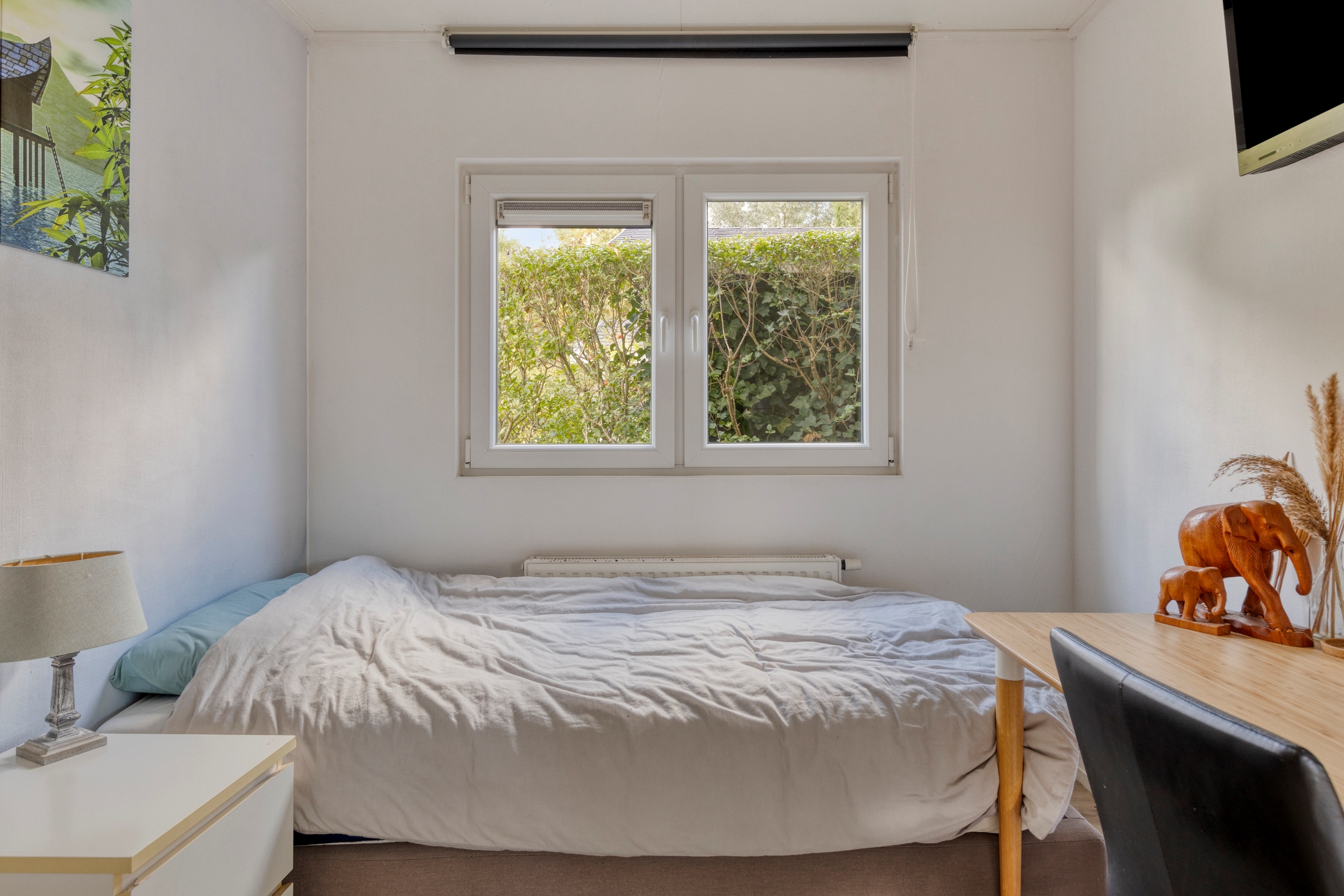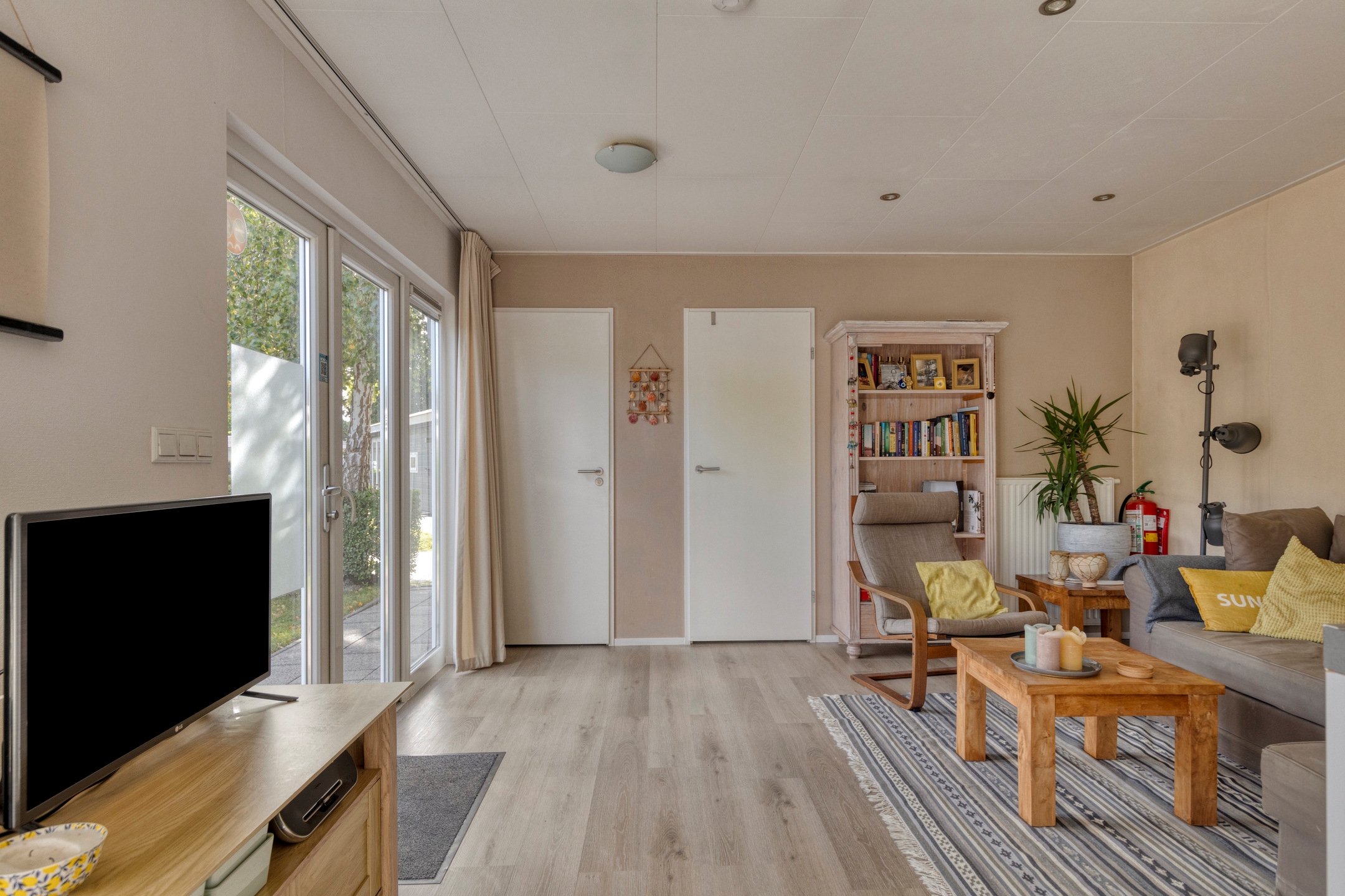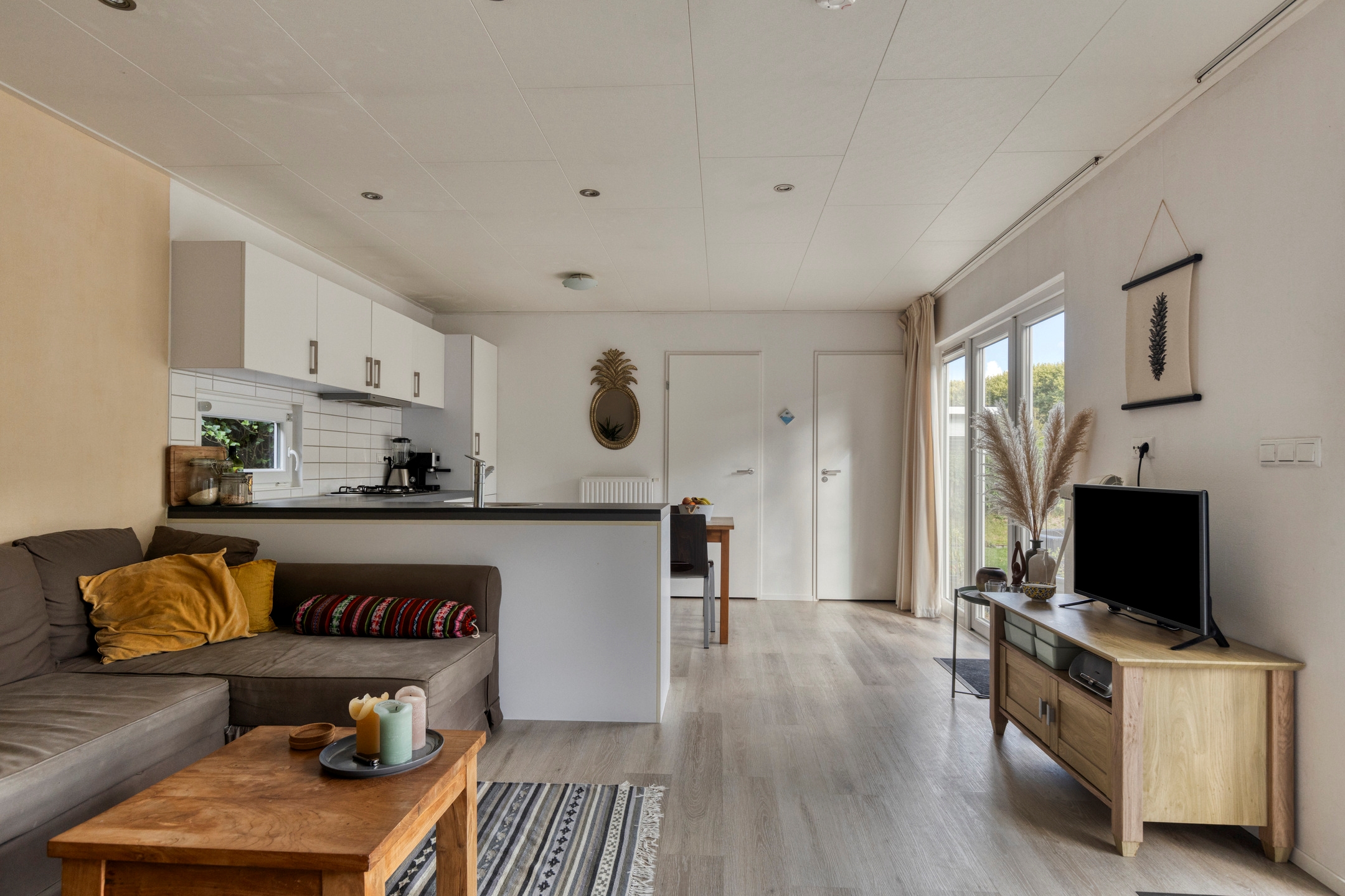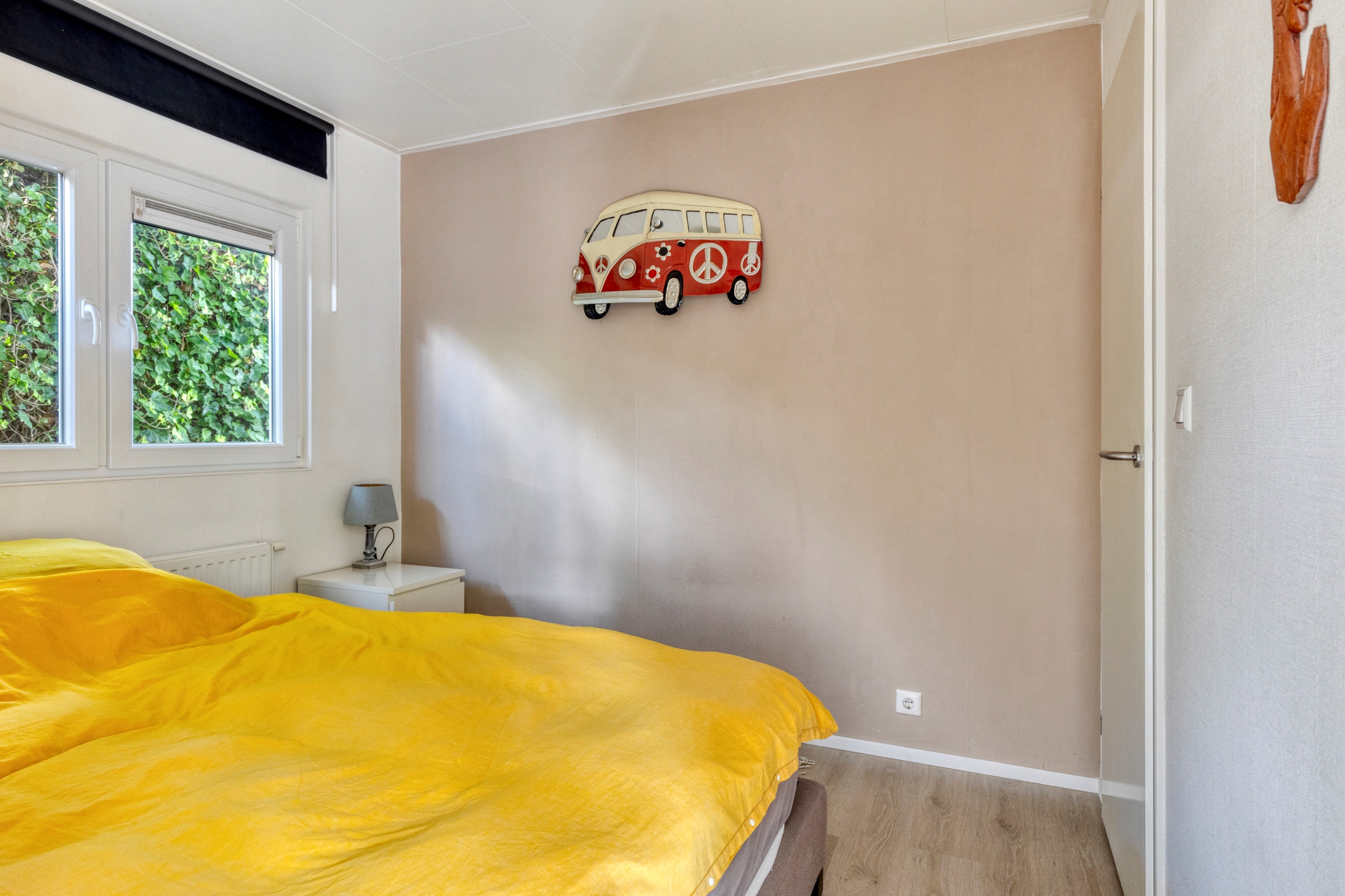 Het chalet beschikt over 2 slaapkamers, een lichte woonkamer met open keuken, een aparte douche en een los toilet. De grote openslaande deuren zorgen voor veel licht en gemakkelijke toegang tot de tuin met zonnig terras, vrijstaande berging, parkeerplaats op eigen terrein én uitzicht over het water. Een ideale plek midden in recreatiegebied Spaarnwoude, met alle voorzieningen zoals winkels, scholen en andere faciliteiten op 15 minuten fietsafstand.