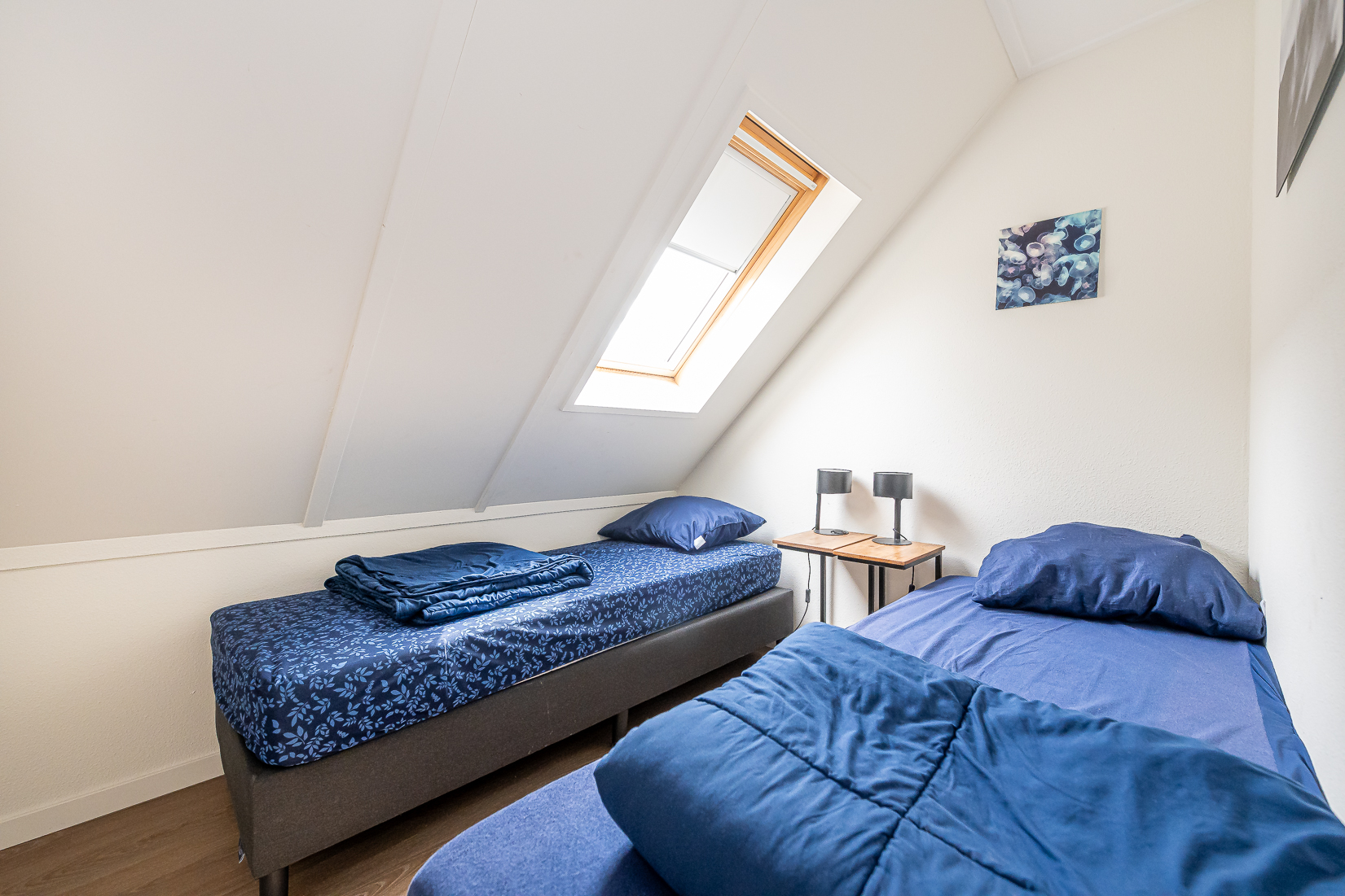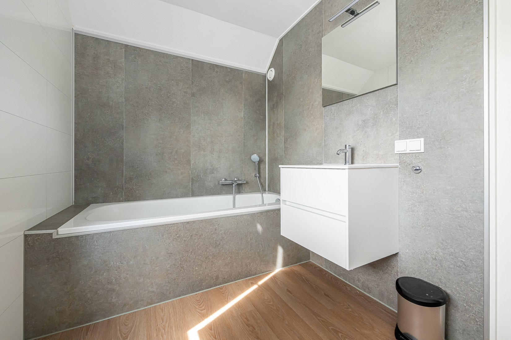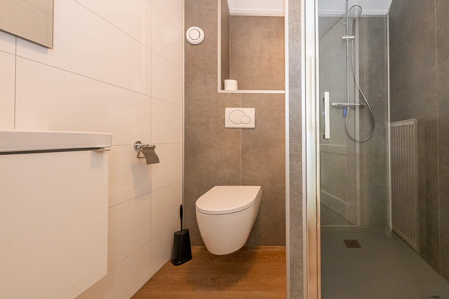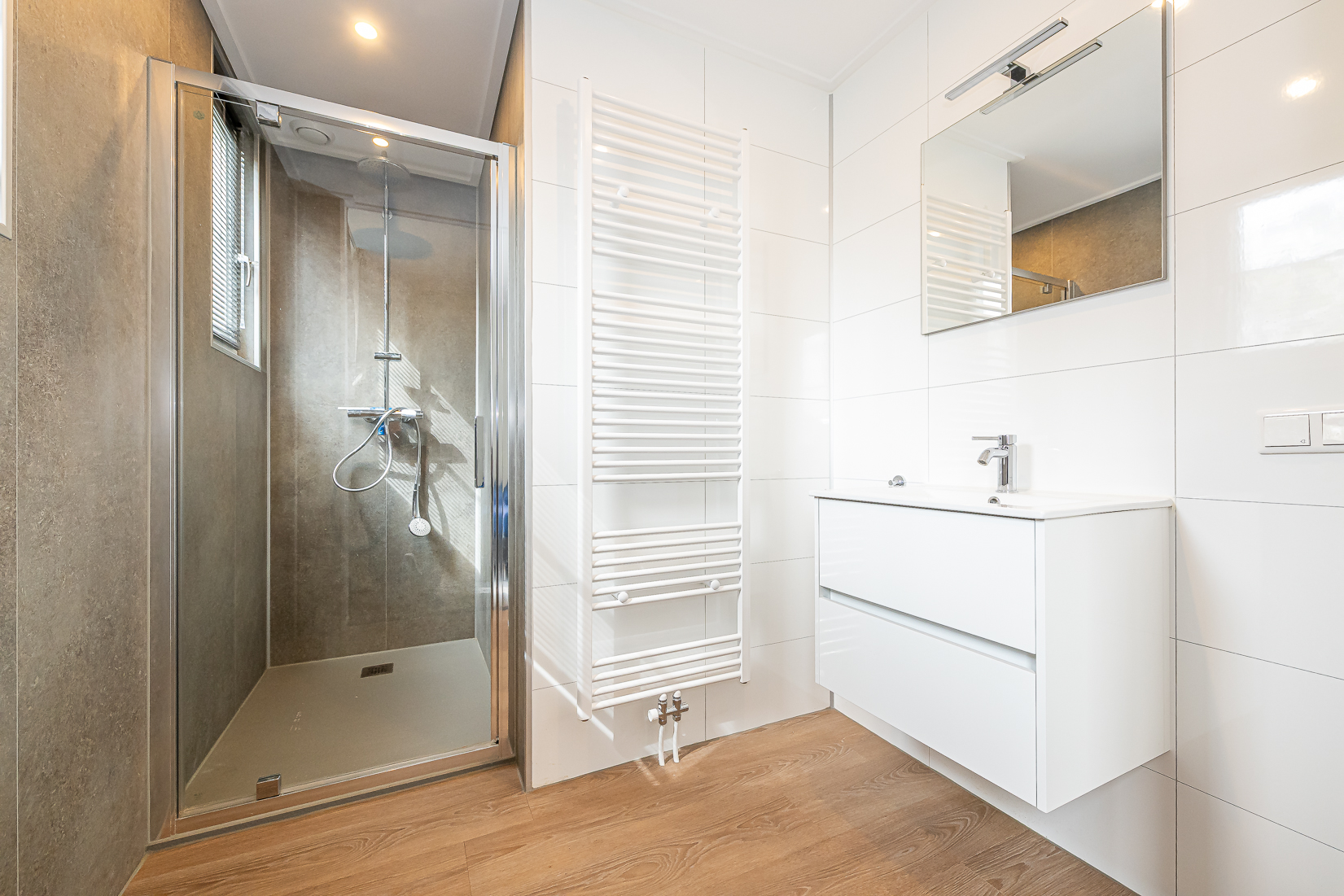 Op de begane grond bevindt zich een slaapkamer en een moderne badkamer met inloopdouche, wastafelmeubel en handdoekradiator, evenals een separaat toilet en een inpandige berging met wasmachine. Op de eerste verdieping zijn vier ruime slaapkamers met kastruimte en een tweede badkamer met ligbad, inloopdouche, wastafelmeubel en toilet.