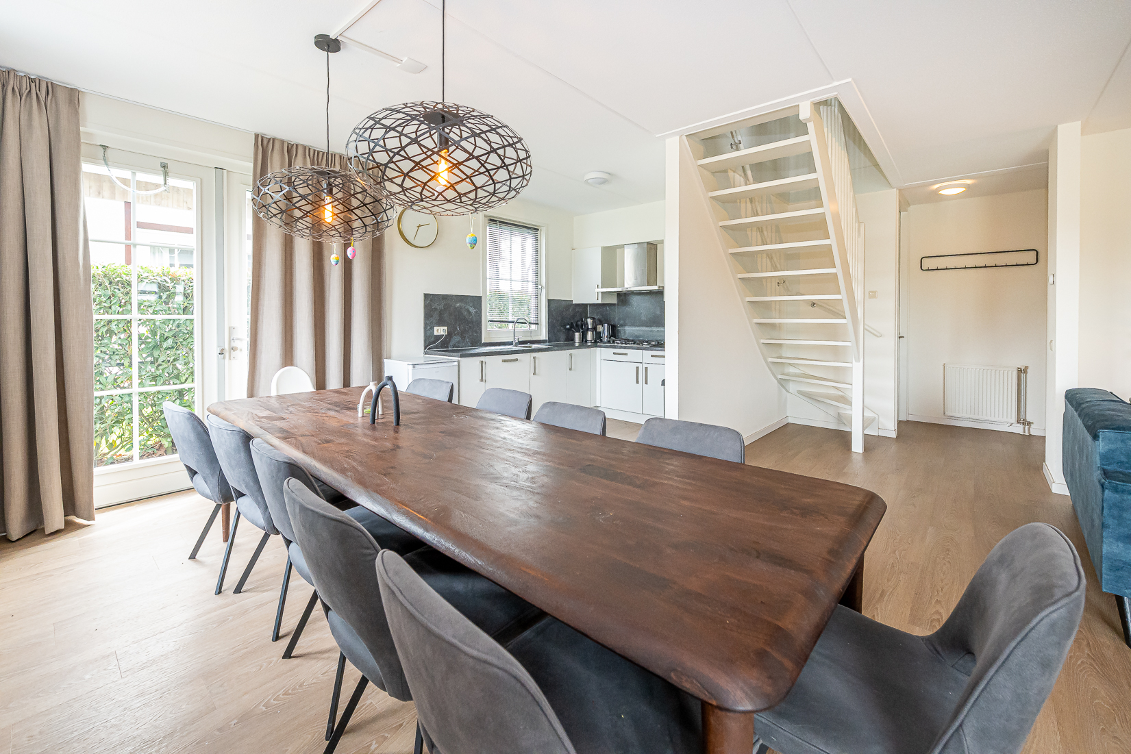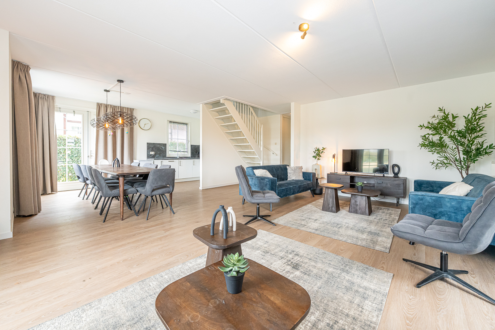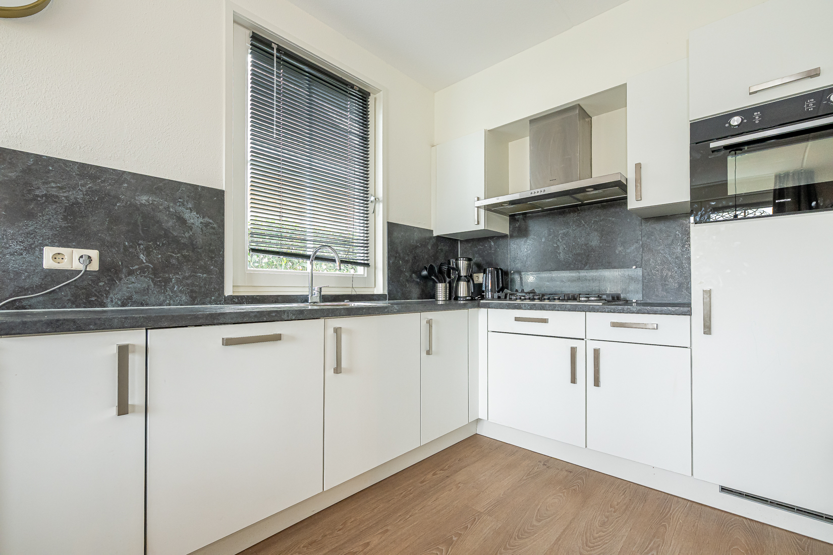 De lichte en ruime woonkamer vormt het hart van de woning en biedt via openslaande deuren direct toegang tot het terras, waar u optimaal kunt genieten van de groene en waterrijke omgeving. De moderne open keuken sluit hier naadloos op aan en is voorzien van diverse inbouwapparatuur, waaronder een vaatwasser, combimagnetron, koelkast met vriesvak, gaskookplaat en afzuigkap.
